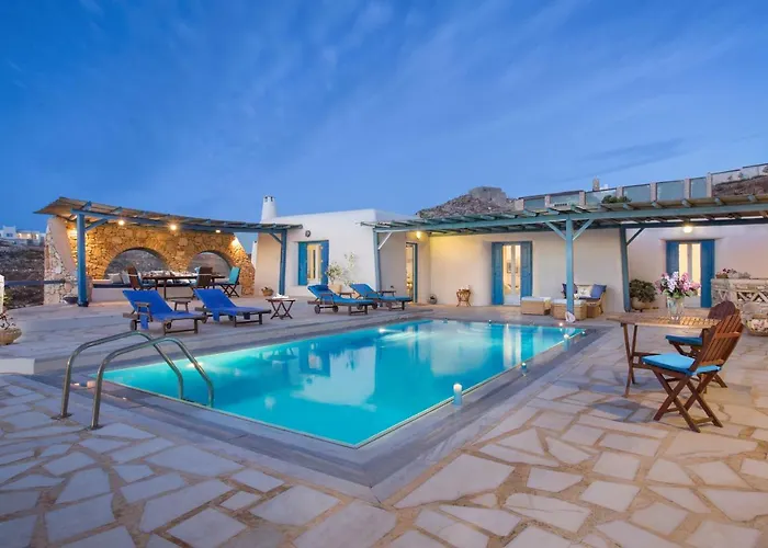 De luchthaven Mikonos is binnen 8 minuten rijden te bereiken en natuurattracties zoals het Agios Stefanos-strand liggen op 4 km afstand. Fabrika-plein is op 30 minuten wandelen van de villa te vinden. Gasten kunnen ook een bezoek brengen aan de Matoyianni straat, gelegen op 2 km afstand.